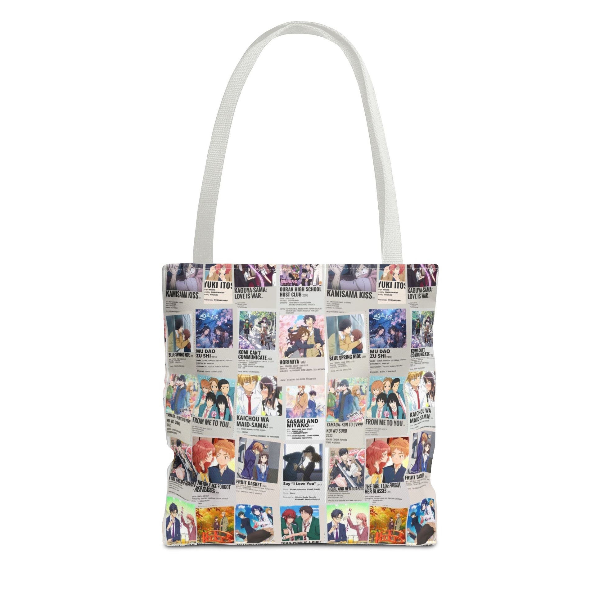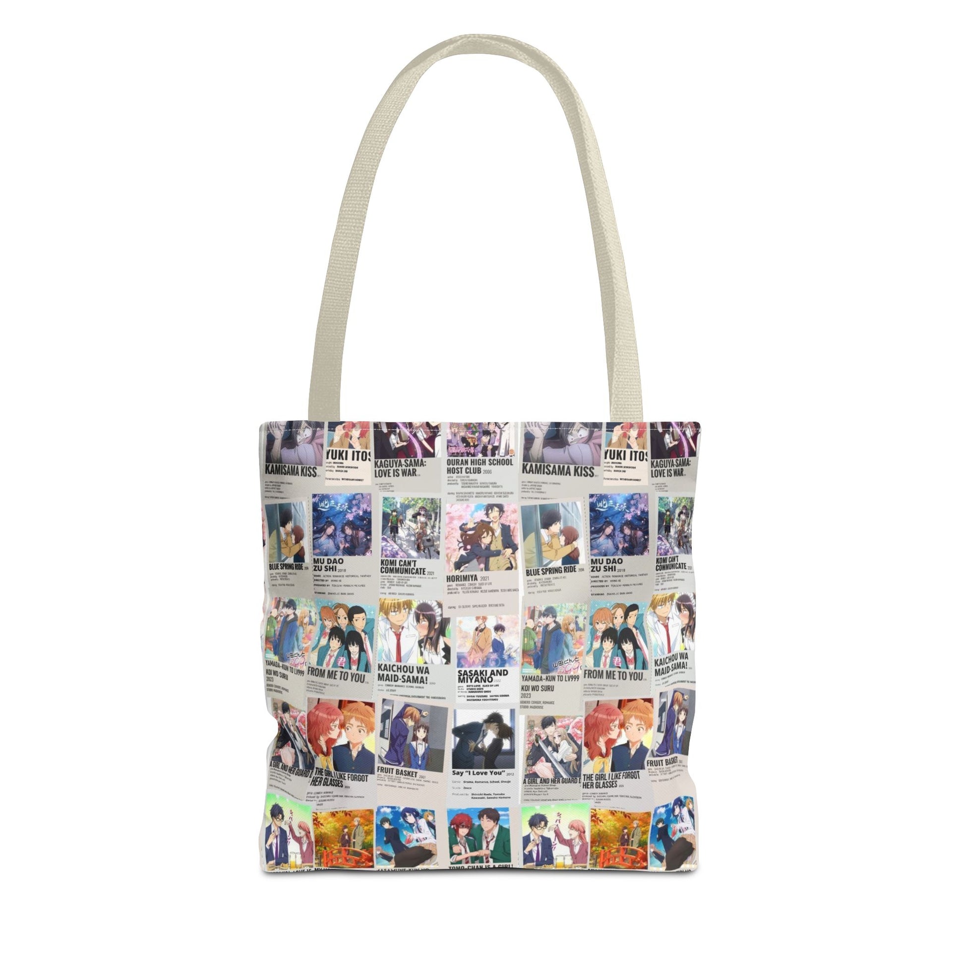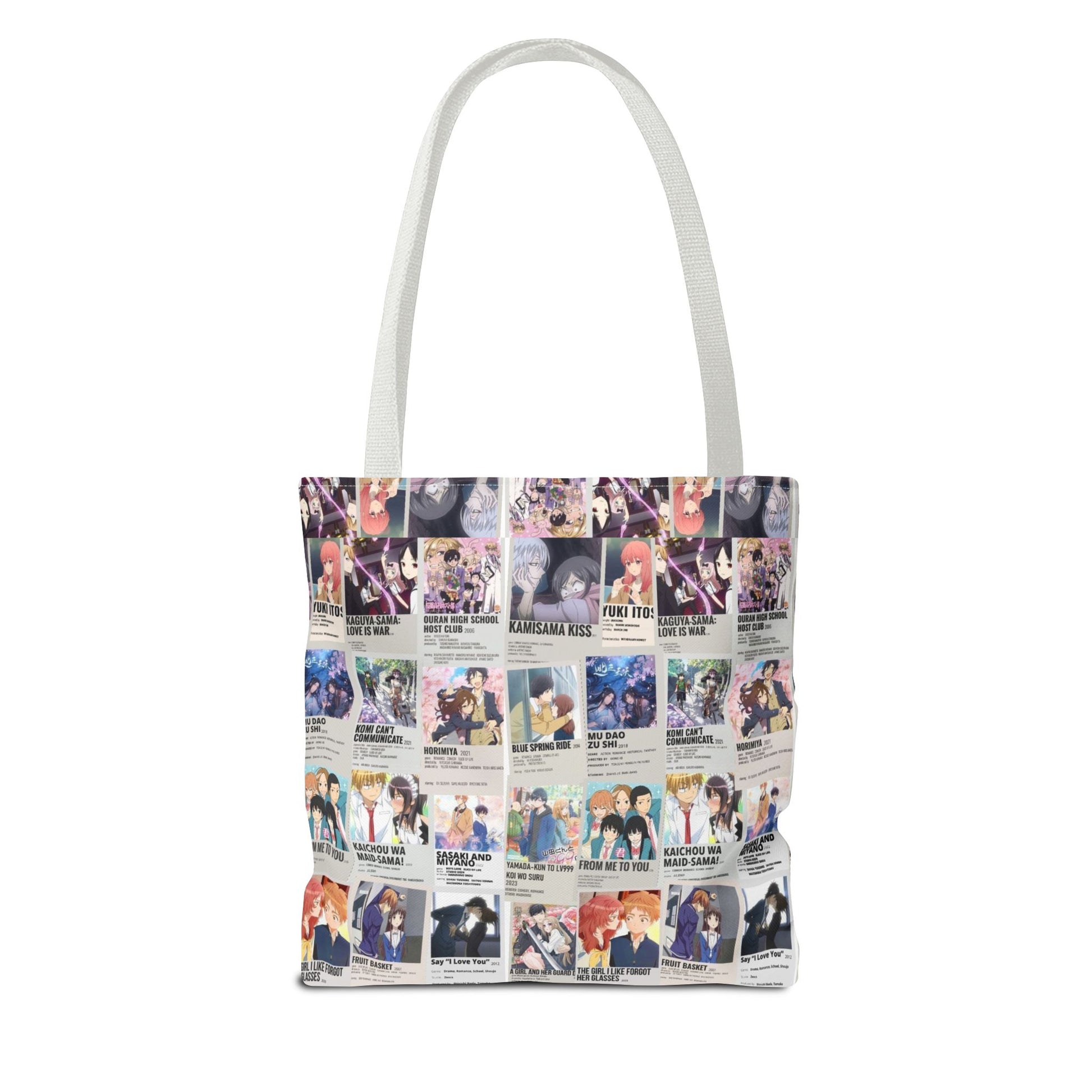 Romantic Anime Collage Tote Bag – Aesthetic Polaroid Photo Grid All-Over Print