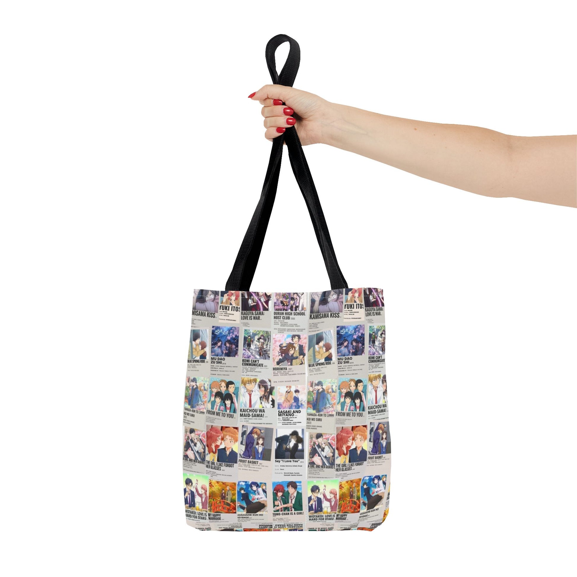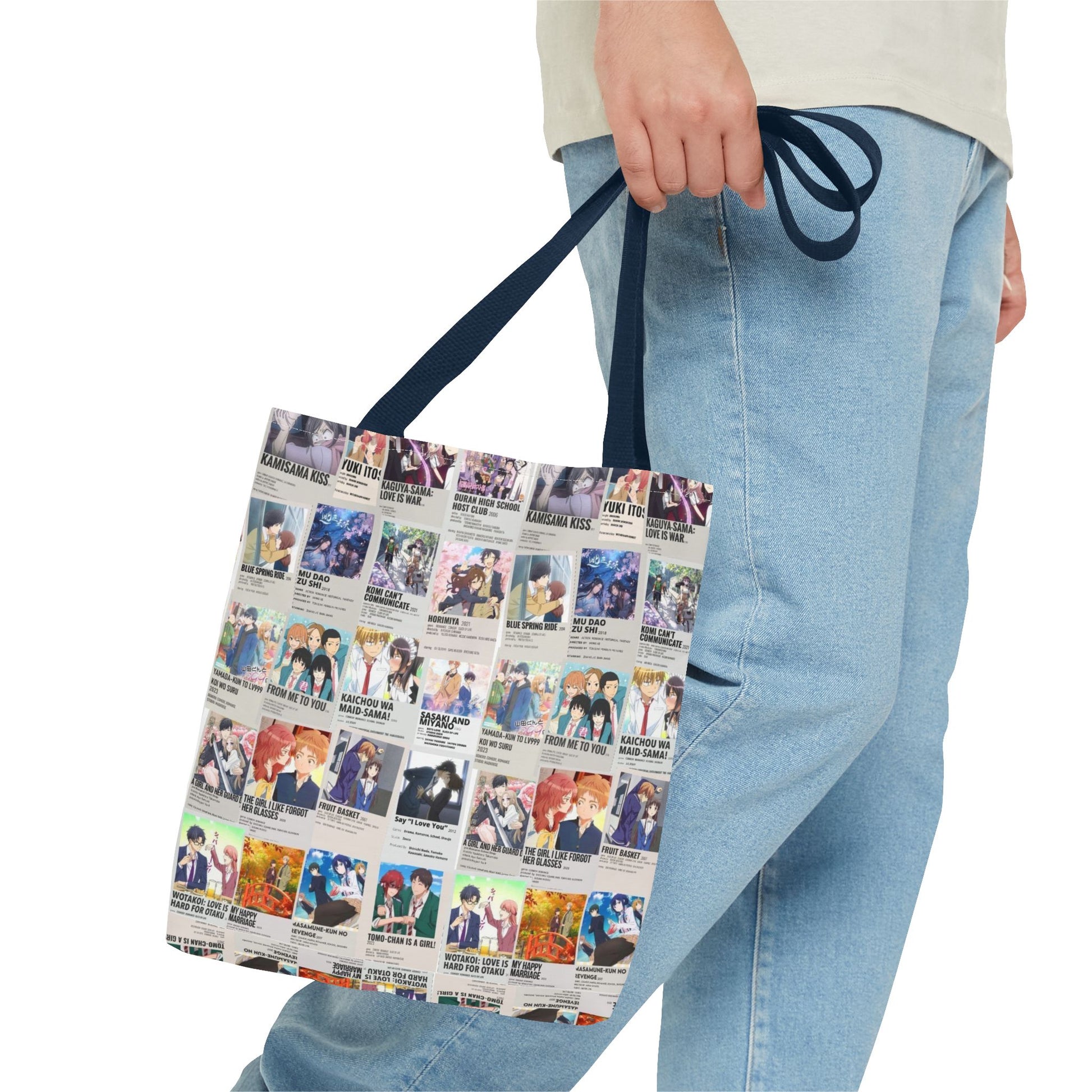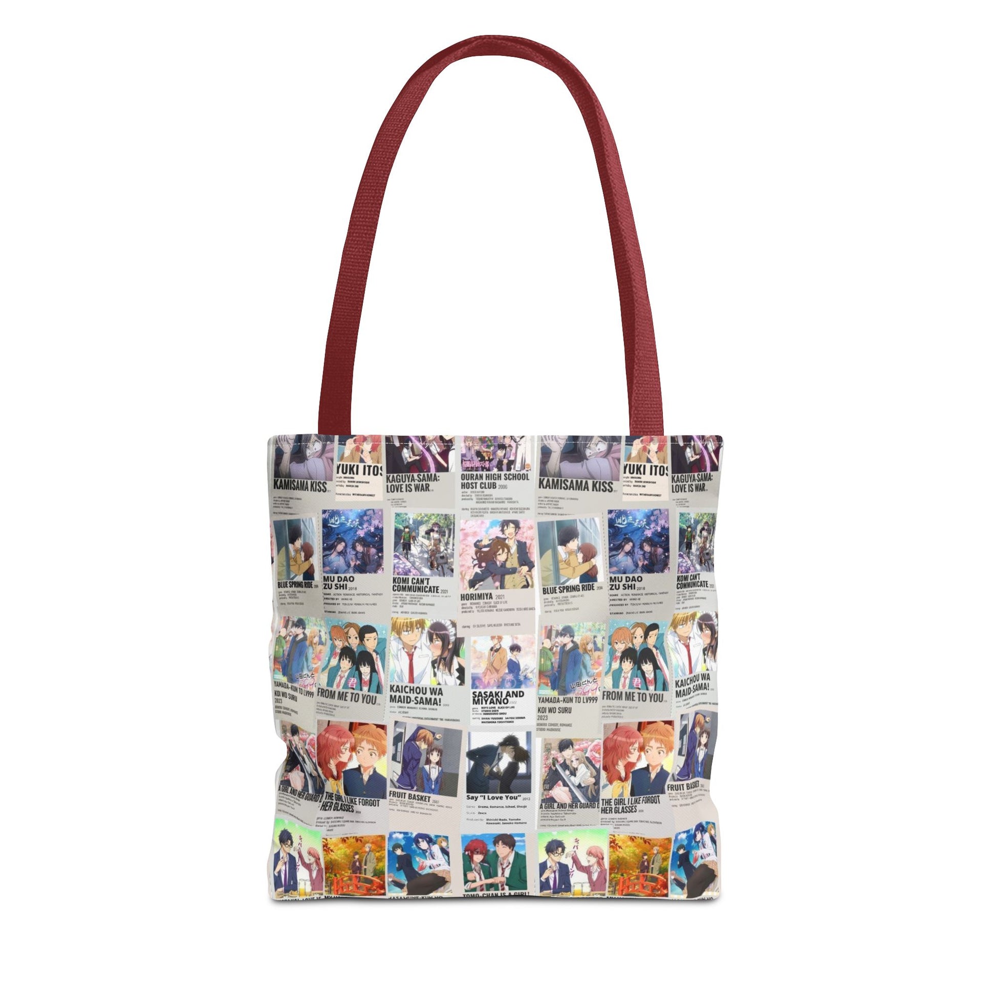Romantic Anime Collage Tote Bag – Aesthetic Polaroid Photo Grid All-Over Print